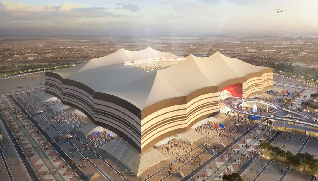 Construído na cidade de Al Khor para comportar 60 mil pessoas, esse estádio lembra, em sua arquitetura, as famosas tendas tão comumente usadas pelos povos locais.