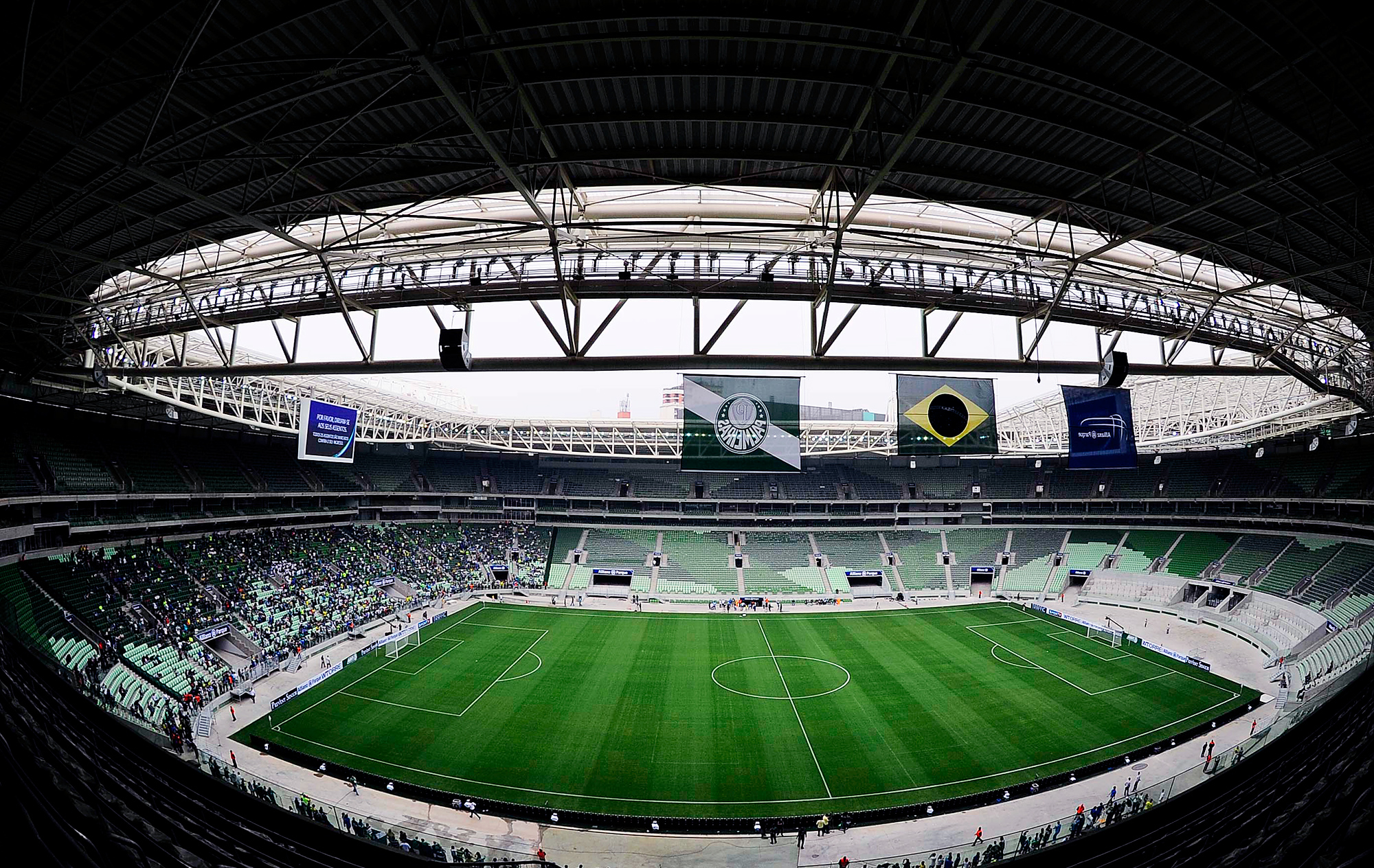 10. A grama dos campos cresce rápido. Ela precisa ser aparada até duas vezes por semana para manter uma altura média de 24 mm. Os desenhos no gramado são feitos na hora do corte, pela máquina de aparar