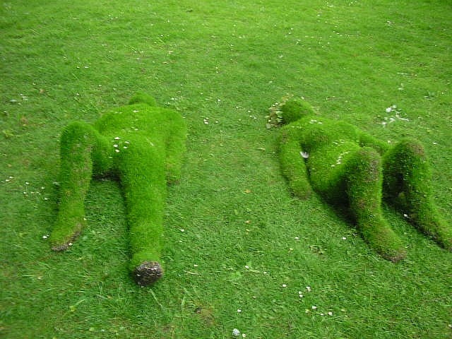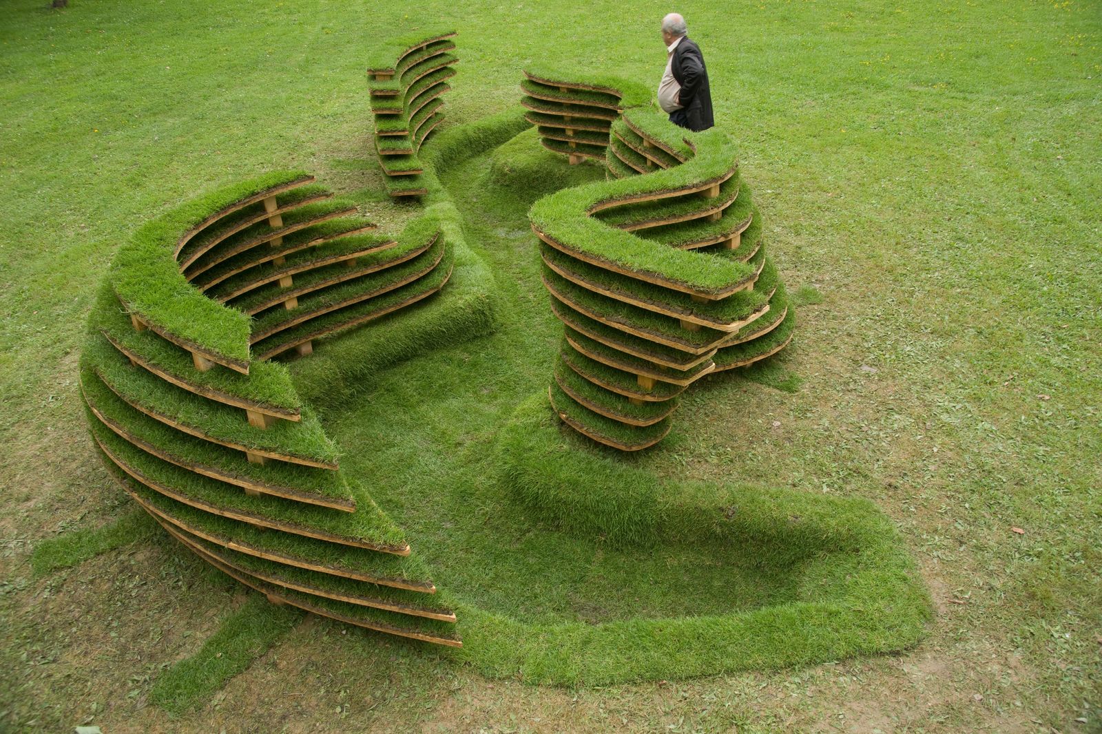 Há muitos exemplos pelo mundo de esculturas que utilizam grama – de jardins transformados em verdadeiras instalações a intervenções em parques públicos.